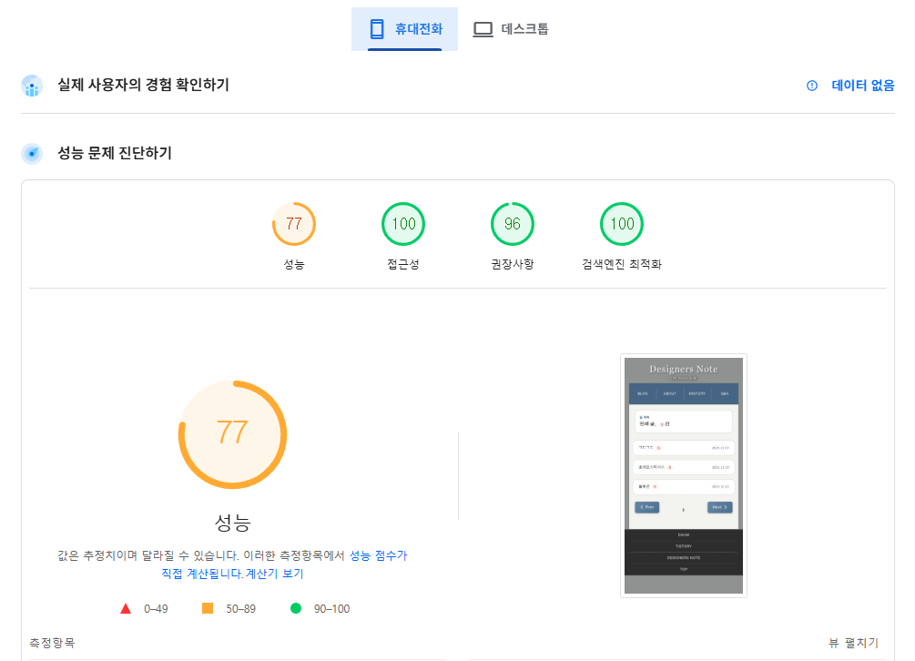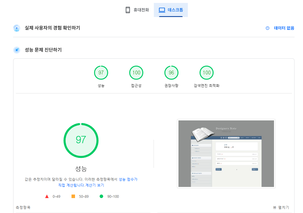 그리고 현재 브라우저에 맞게 최적화를 진행했고 결과물